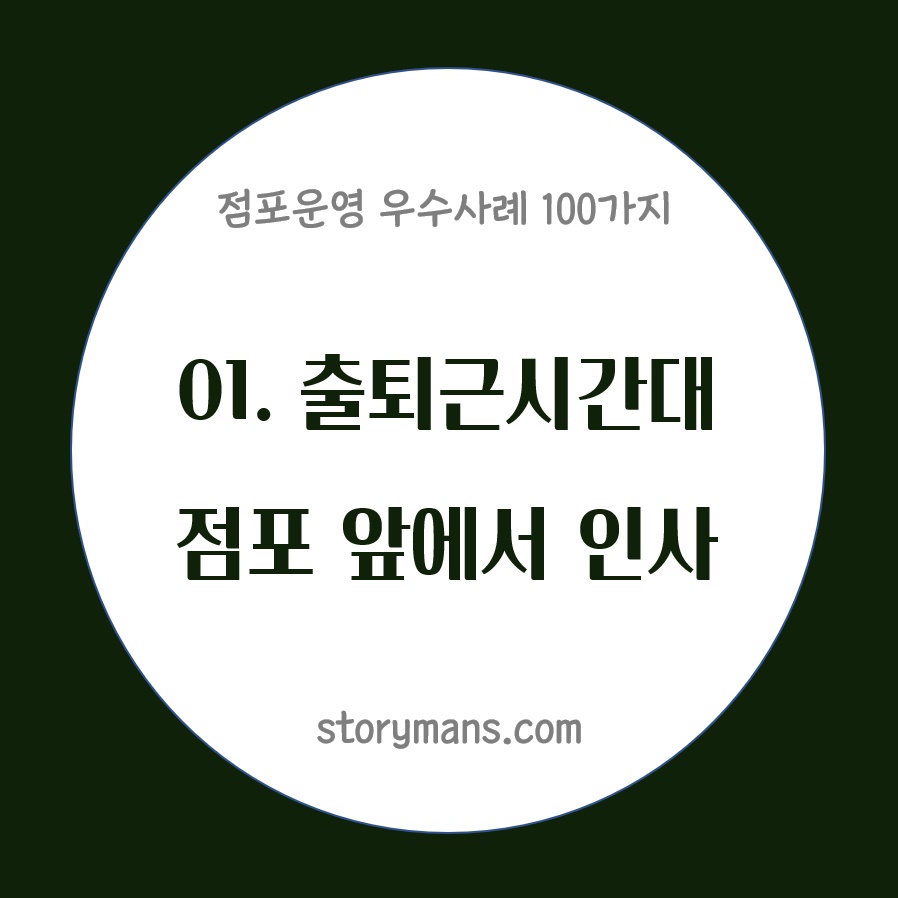 - 매장 내부의 청결은 기본, 매일 아침과 저녁, 특히 출퇴근 시간에 매장 앞을 쓸면서 지나가는 분들께 밝게 인사를 했습니다. 손님들로 하여금 '저 점포는 참 부지런하구나', '바쁜 시간에도 친절하시구나'라는 인상을 심어주기 충분했습니다. 매장에 대한 좋은 인상은 단골을 늘리고, 각인 효과를 남겨 매출도 올려주는 씨앗이 되었습니다.